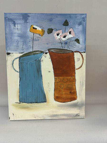 Obraz "Dzbanki" malowany na podobraziu farbami akrylowymi. Wymiary 30x40